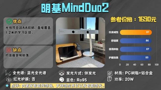 推荐理由:发光面结合上直发光的发光方式下,能够轻松覆盖1.2米的书桌。