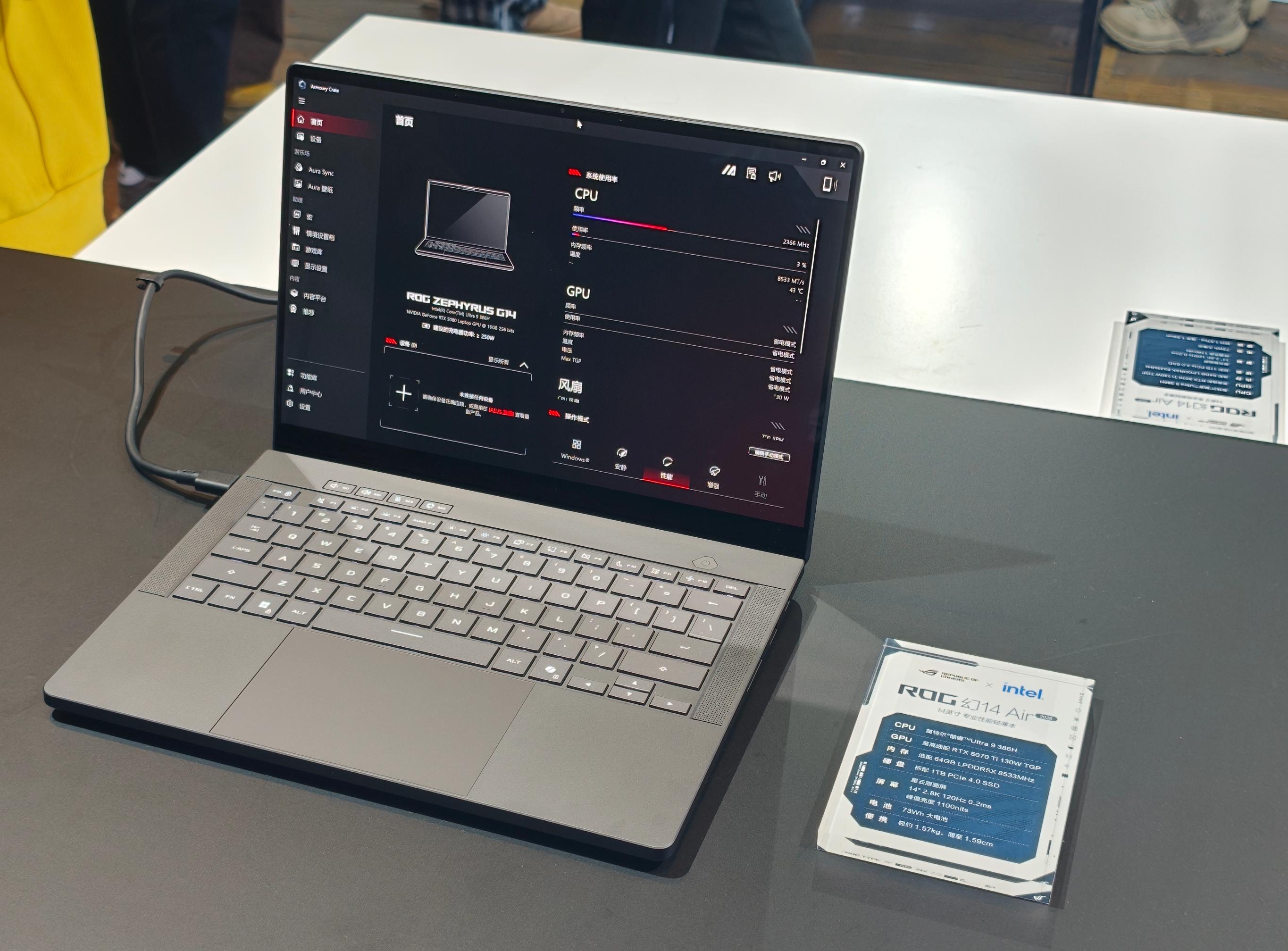 轻薄表现更是惊艳:ROG幻14 Air 2026薄至1.59cm、轻约1.57kg,ROG幻16 Air 2026薄至1.49cm、轻约1.95kg,单手就能轻松携带。在极致便携的机身下,却藏着旗舰级性能:全系搭载酷睿Ultra9 386H处理器,显卡覆盖锐炫Xe核显至RTX 5090/5070Ti,其中ROG幻16 Air的RTX 5090显卡版配合全新冰川散热架构拥有175W TDP,性能释放媲美传统游戏本。