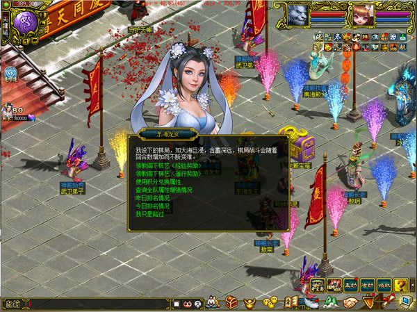 当然,除了抽奖这个渠道,周年庆的正经活动也有不少福利等待着大家。这次周年庆还有一个名为“四海升平”的嘉年华,规格那是相当之高。在天墉城(389,206)处,大家就可以找到本次活动的劳模——东海龙女,在她那里接取到绝大部分活动任务。
