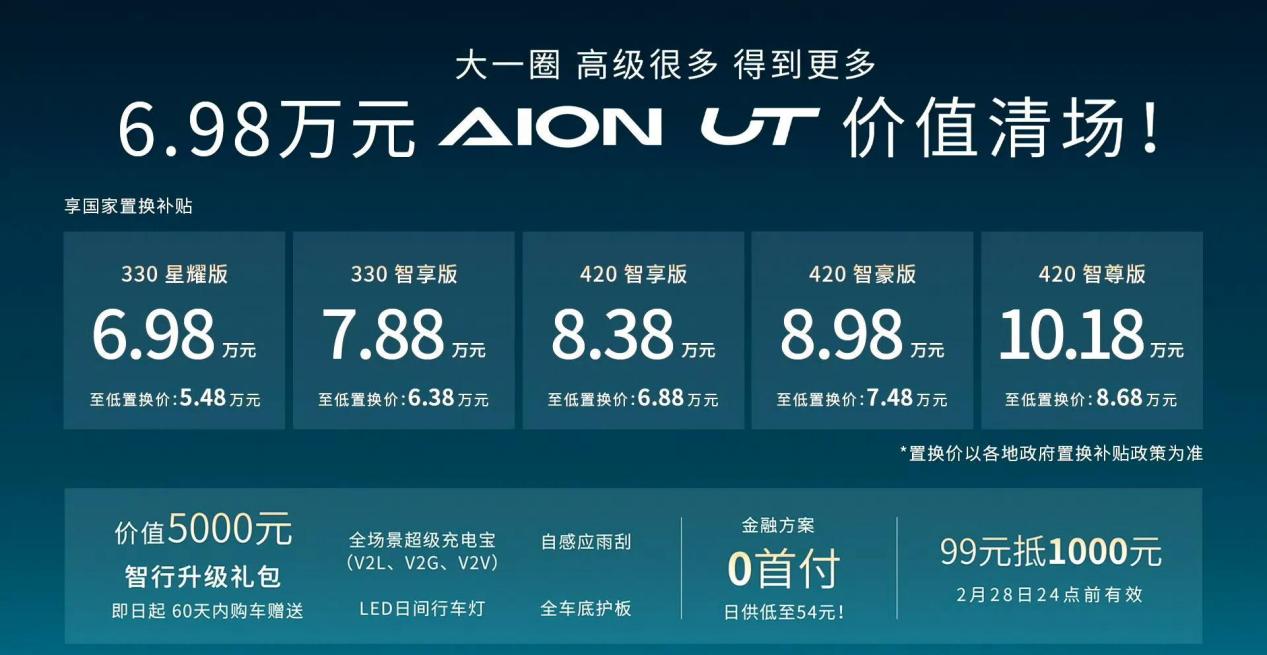 总的来说,埃安UT是一款极具性价比的车型,它的出现,打破了A级车市场的固有格局,也为消费者提供了更多的选择。如果你正在寻找一款价格实惠、品质可靠的纯电SUV,那么埃安UT绝对值得你考虑。