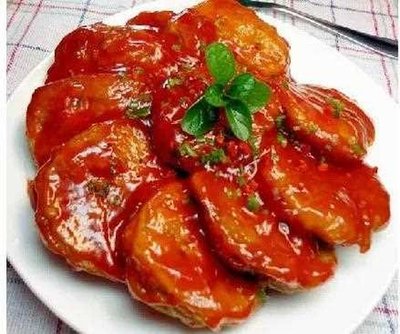 5、锅中留少许底油,加入两大勺白糖,转小火,炒糖颜色变红时,不要炒过头,然后迅速倒入我们准备好的酱汁,将糖醋汁煮至浓稠。如果觉得有点稀,可以加一点水淀粉。最后熬成浓汤。