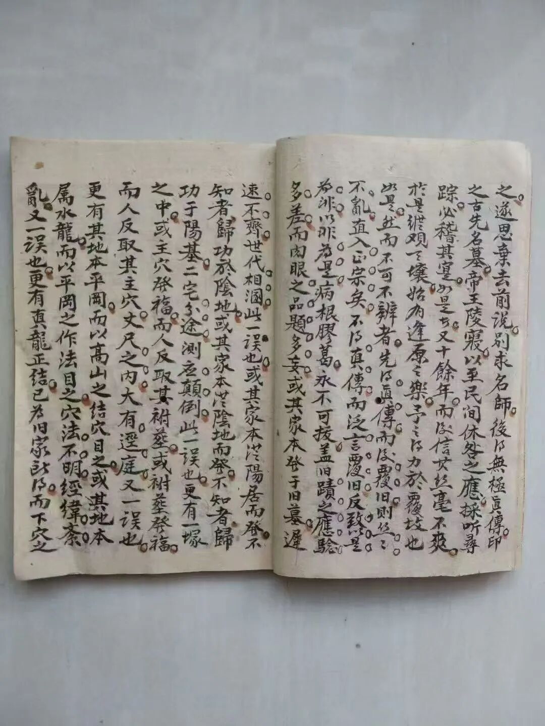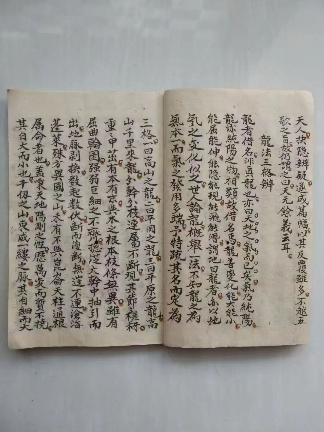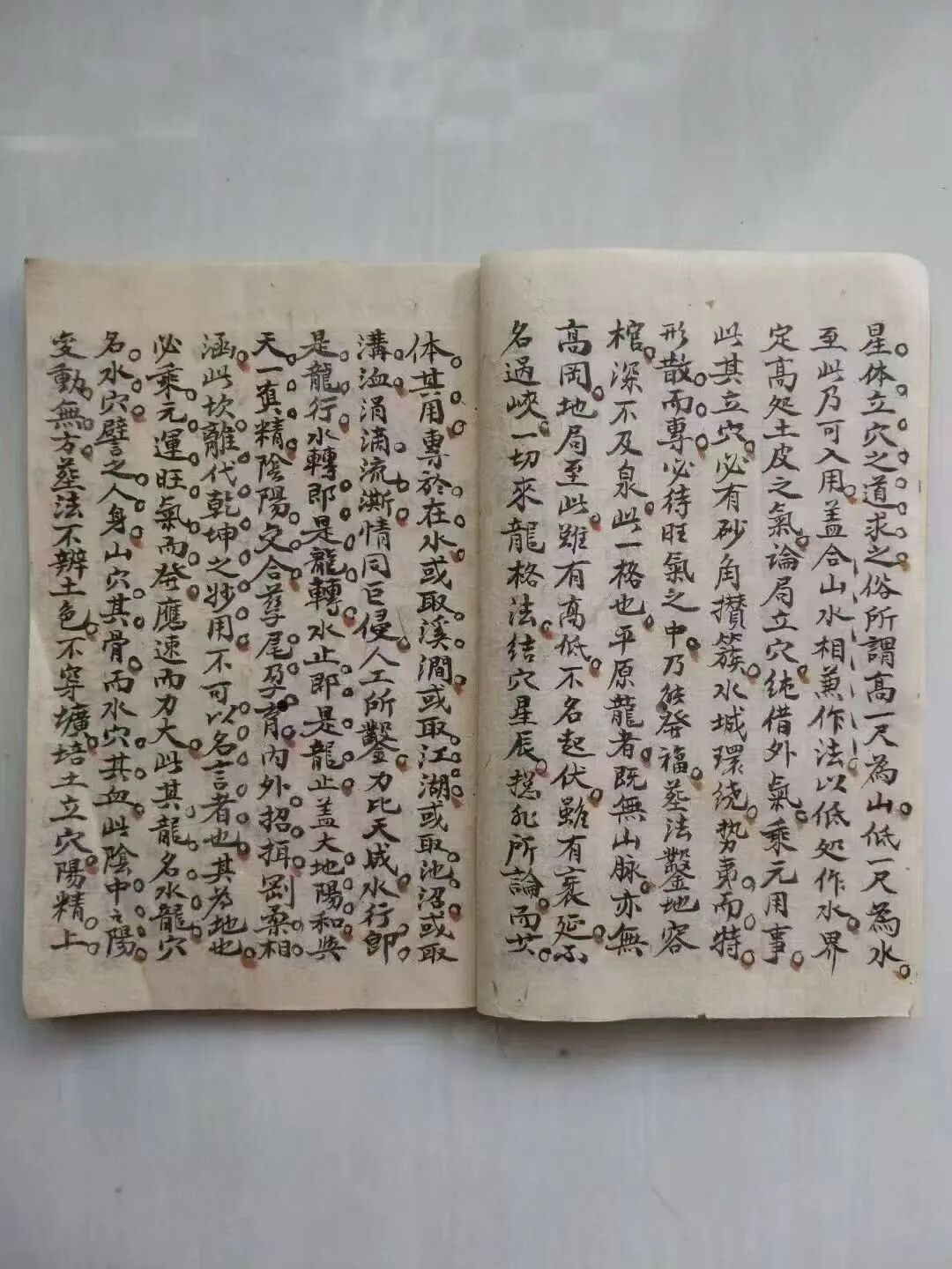 典籍最鲜明的特质,是“承前启后、理气精纯”,完美延续蒋大鸿三元地理“以理定局、以气断运”的核心精髓。作为宗师秘传本,50余单页字迹古朴规整,无残缺篡改,每页均承载干货内容,既忠实传承三元地理“龙、穴、砂、水、向”与理气结合的核心逻辑,又针对阳宅布局的核心痛点,补充“阳宅三格辨”等专属技法,是对《玉函真义》天元篇的深度拓展。27筒子页的形制保留了古籍原貌,纸张浸润着岁月质感,部分页面留存历代传承者的朱笔批注,既有对理气逻辑的补充阐释,也有实战案例的注解,更添传承温度。