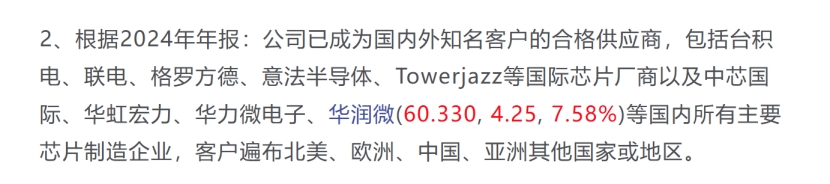 台积电供应商:2024年年报表示,公司已成为国内外知名客户的合格供应商,产品已经进入台积电供应链,将受益于台积电资本开支大幅增加带来的增量。