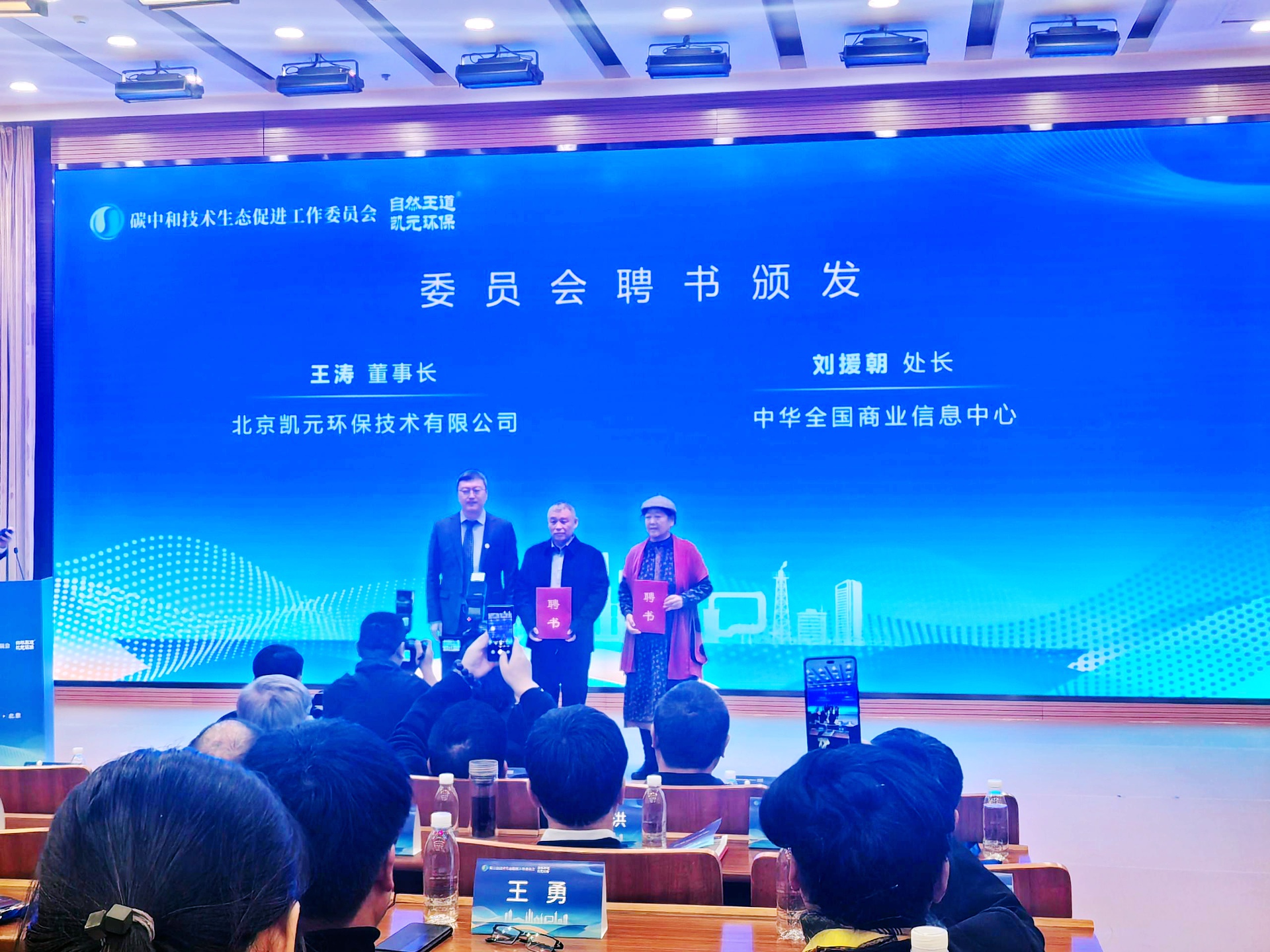 会议现场举行聘书和证书颁发仪式,北京凯元环保技术有限公司董事长王涛、中华全国商业信息中心处长刘援朝获颁相关证书,将在后续工作中承担相应职责,助力委员会各项工作落地。