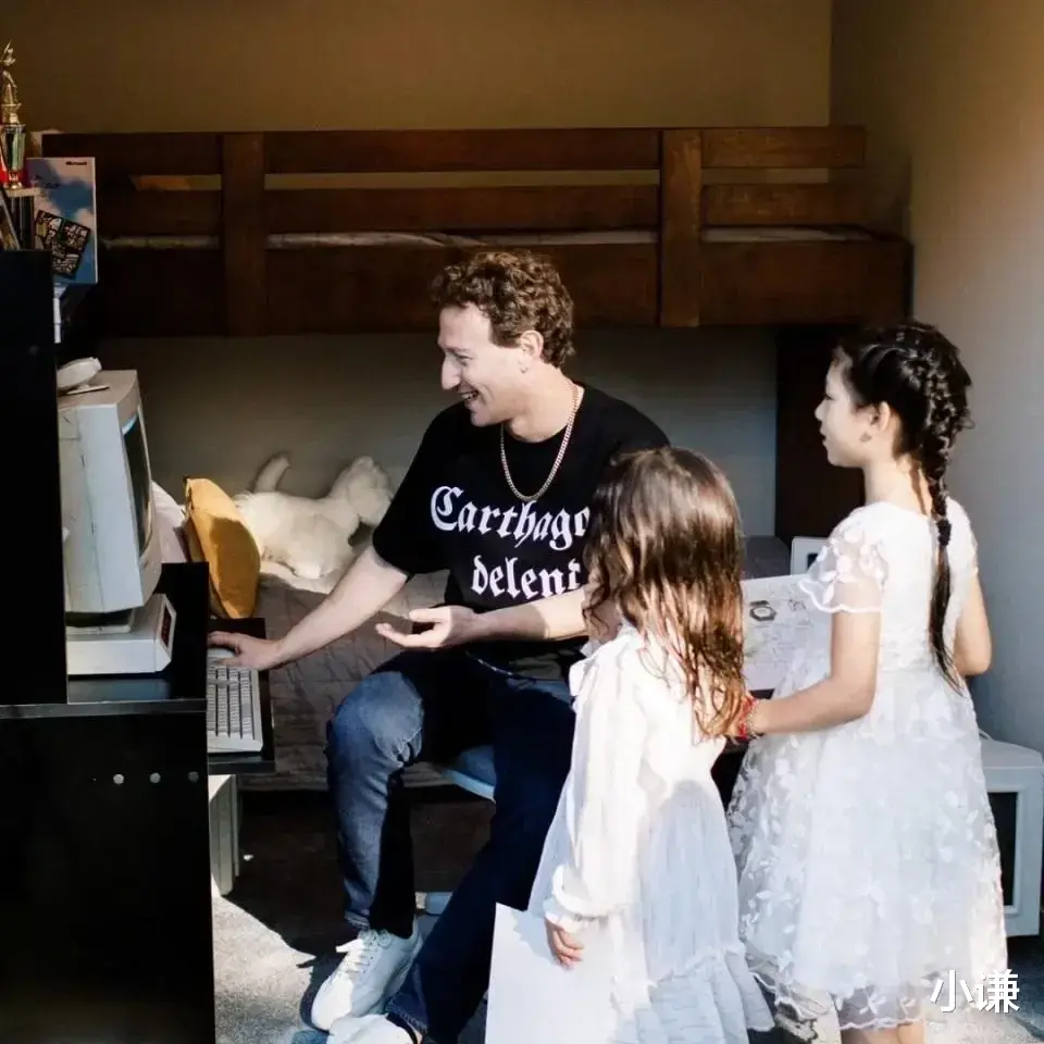 派对的核心亮点是几个充满怀旧气息的小屋,它们分别代表了扎克伯格童年的卧室、哈佛大学的宿舍以及创业初期的小公寓。这些小屋内部装饰细致入微,从家具到摆设,都力求还原当年的风貌。在童年的卧室里,一台老式电脑摆放在桌上,这正是扎克伯格学会编程的地方。他坐在桌前,身后是那些熟悉的物件,不禁勾起了无数珍贵的回忆。两个大女儿Maxima和August陪伴在他身边,好奇地打量着这些“古董”,而最小的女儿Aurelia则依偎在父母怀中,享受着这份难得的温馨时光。