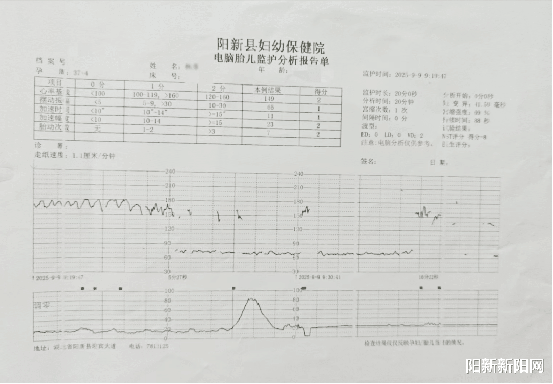 近日,阳新县妇幼保健院产科胎心监护室的一声急呼,打破了原本有序的节奏。孕37+2周的林女士(化名)正接受常规监测——这位已有3次剖宫产史、孕5产3的高危妈妈,腹中胎儿的心率突然从正常的110-160次/分骤降至60次/分,提示严重宫内窘迫,生命垂危!