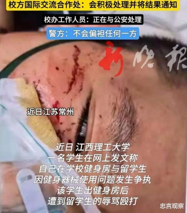 2025 年 4 月 23 日晚,江西理工大学健身房内,一场因健身器材使用引发的冲突,最终演变为令人发指的群殴事件。中国学生小王(化名)在正常训练时,遭留学生强行抢占器械,交涉未果后竟遭多人围殴至昏迷。现场视频显示,施暴者用中文辱骂 “草泥马”,甚至抢夺手机阻止报警,最终导致小王面部骨折、脑震荡,缝合 7 针。