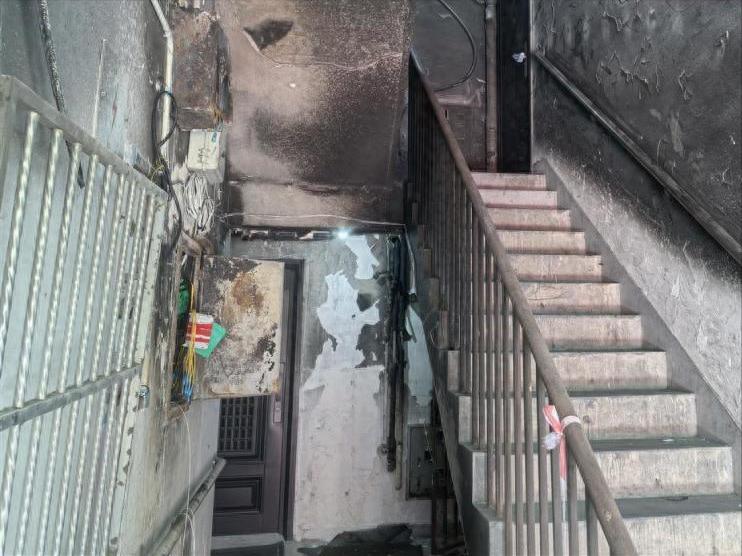 4月26日,古浪新苑小区失火楼栋一楼的痕迹
