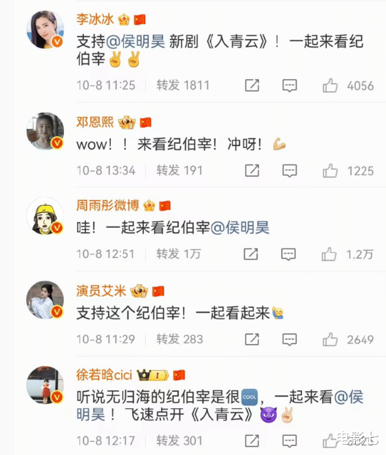 值得一提的是,《入青云》首播当天,获得李冰冰、陈飞宇等20位艺人发文支持。