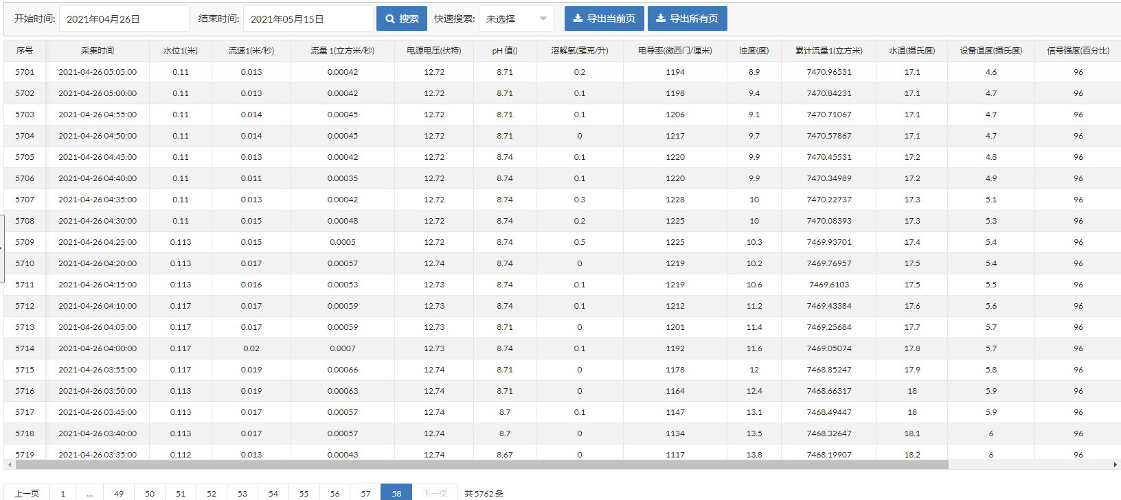 软硬件配置聚焦核心功能优化。硬件方面,雷达流速仪防护等级达 IP66,工作温度范围 - 10℃-60℃;雷达水位计防护等级 IP68,支持支架或抱箍安装;遥测终端机具备远程数据传输与存储功能,可实现参数远程配置。软件平台采用 B/S 架构,支持实时数据展示、历史数据查询、异常预警等核心功能,数据以图表形式可视化呈现,方便工作人员快速掌握监测情况。