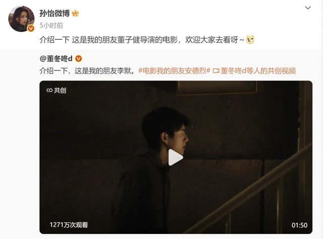起因是董子健有新戏上,孙怡转发打call,表示“这是我的朋友董子健导演的电影,欢迎大家去看呀。”