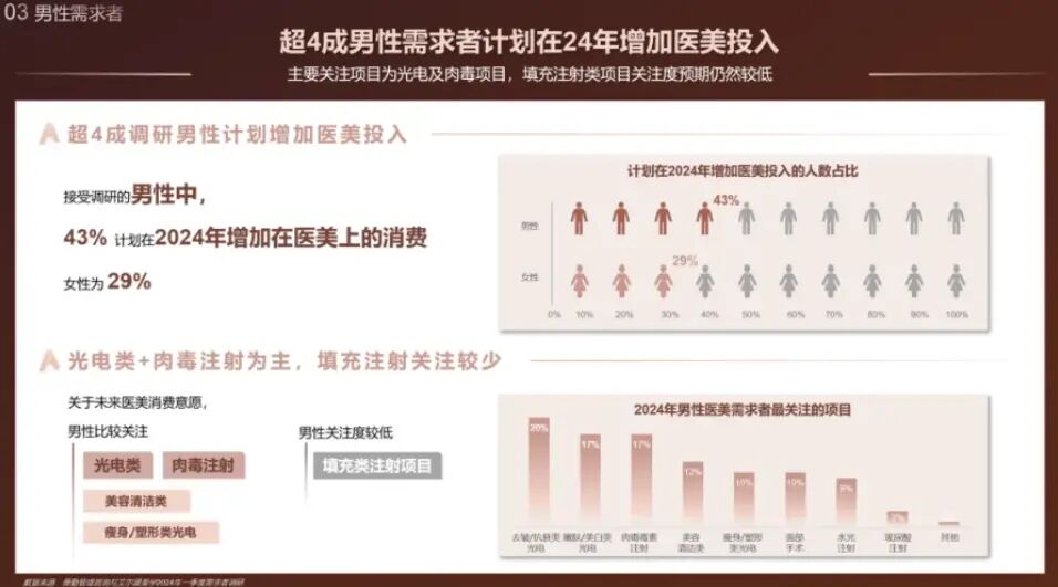 据《中国医美行业 2024 年度洞悉报告》显示,2023 年男性在医美消费上的支出同比增加了 27%。特别是这两年,越来越多男同胞舍得在脸上花钱。