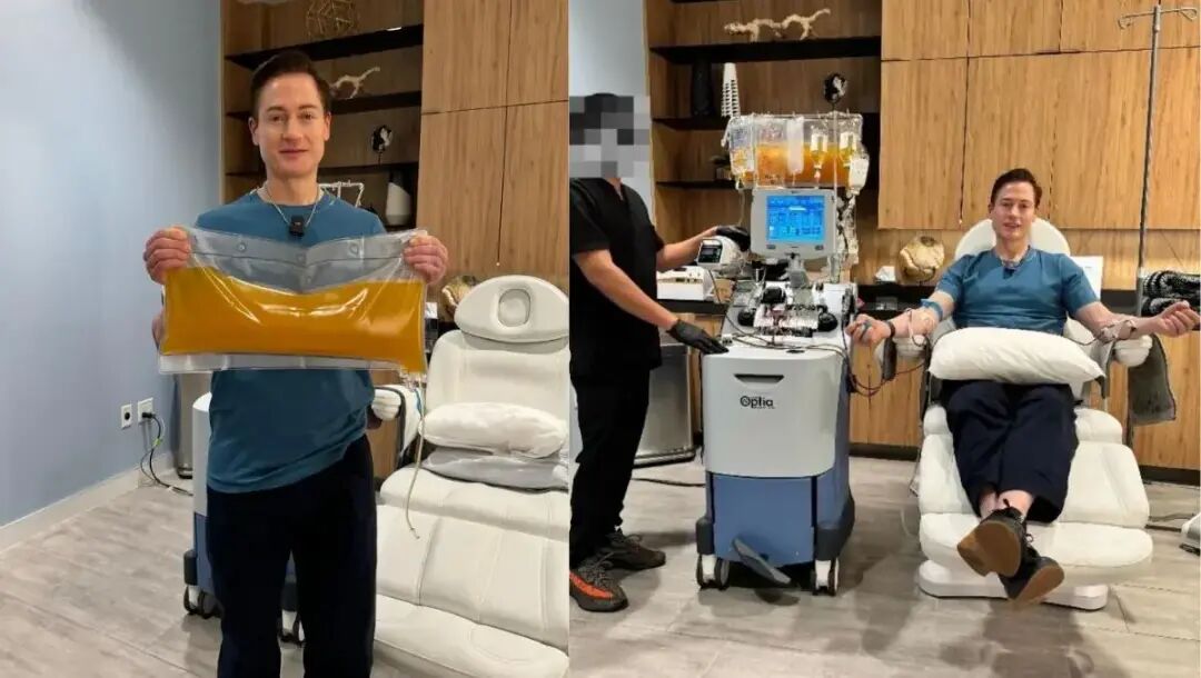其中最出名的操作,就是和 17 岁儿子“换血”。每次会互换 1 升血,约占人体全部血液的五分之一。
