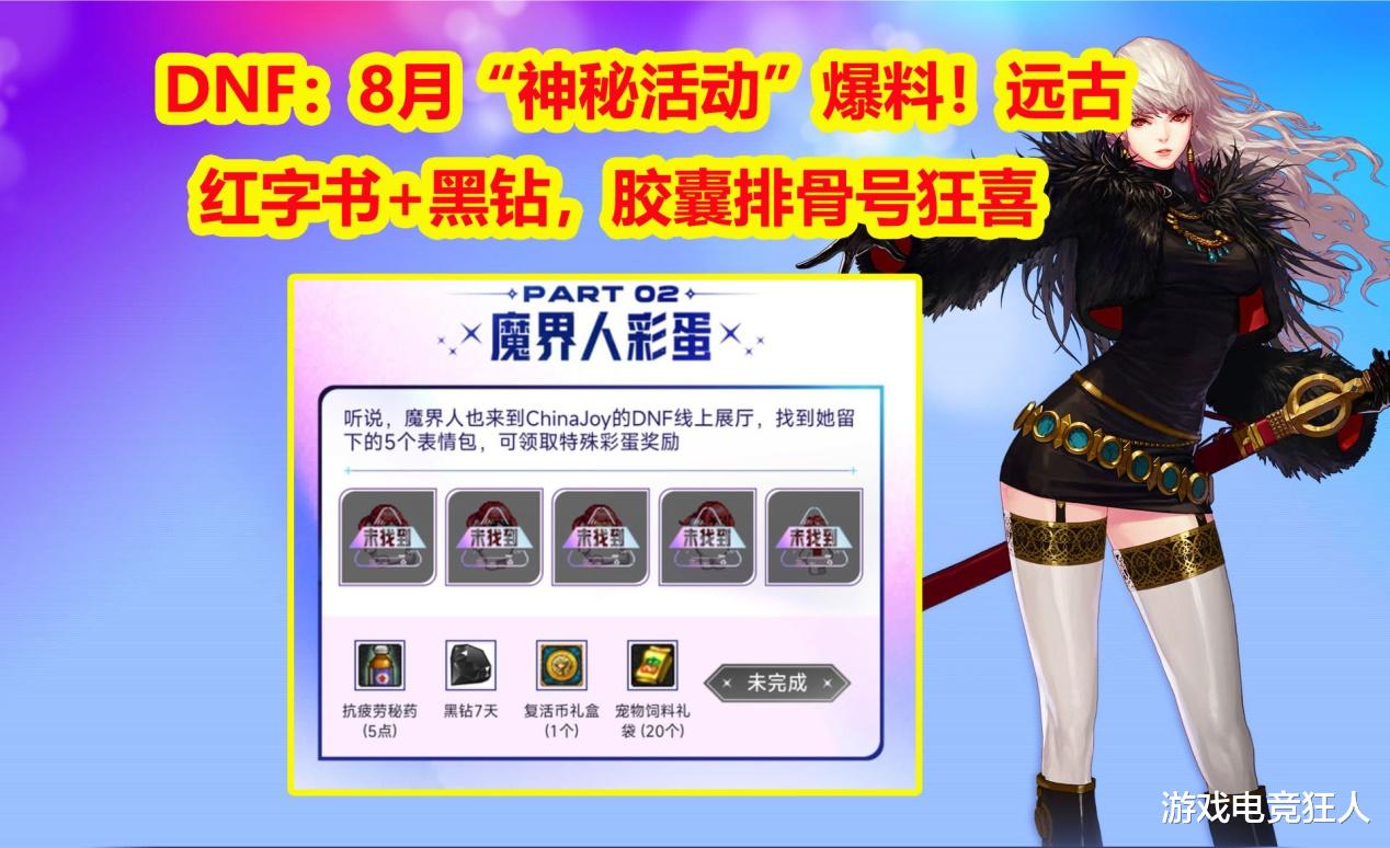 8月官方送出了地下城IP的活动,其实就是韩服DNF宇宙同步宣传活动。此次活动玩家可以拿到一些蚊子腿奖励: