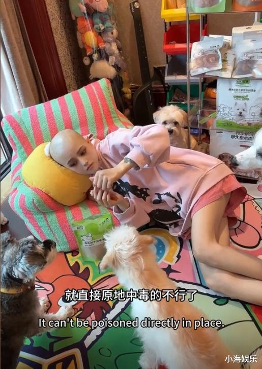 8月9日,因为脱发严重,咖啡干脆将头发剃光,在开始的时候,她称这是自己的一次新奇体验,但堆到一半时还是忍不了崩溃流泪。