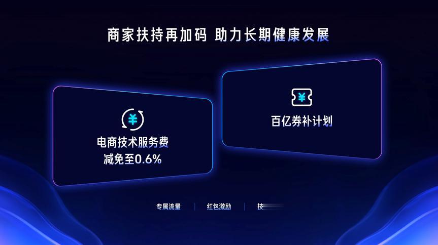 第二,推出百亿优惠券补贴计划。加大发放给消费者的智能优惠券补贴频率与额度,提升转化效率,驱动生意成交,帮商家增收。