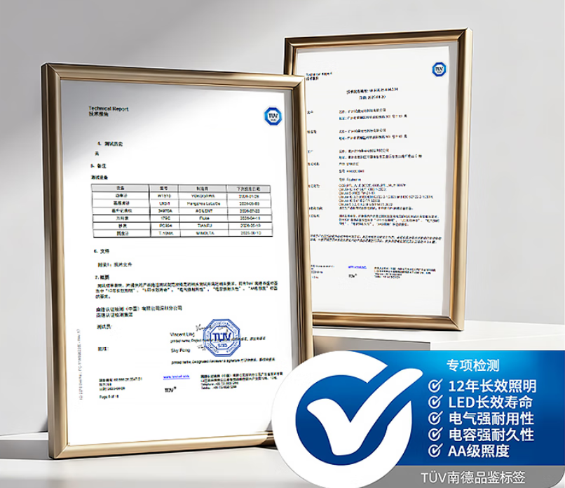 顶配长效护眼光,全球首家拿到南德Tuv12年长效照明认证,这意味着12年里,全屋都能保持教室级的照明品质。