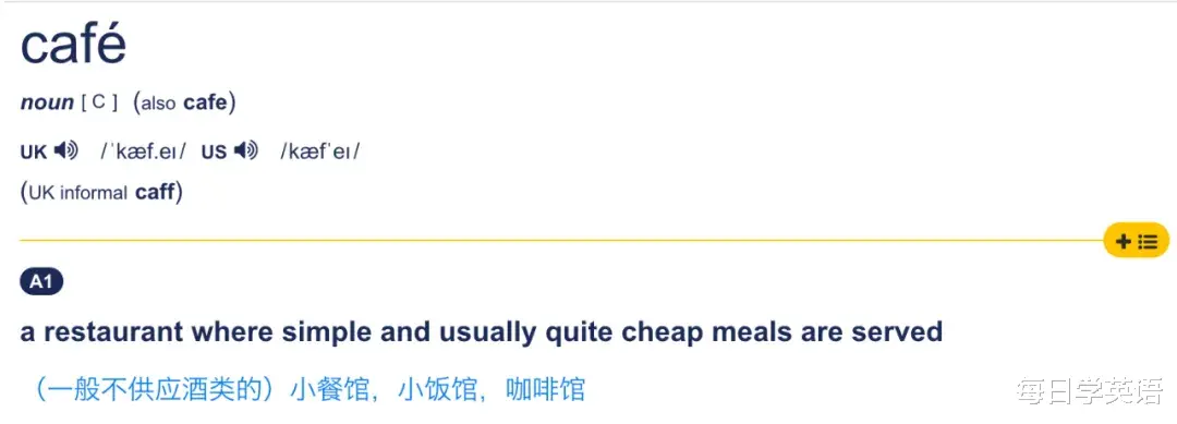 Cafe意思是:(一般不供应酒类的)小餐馆,小饭馆,咖啡馆。