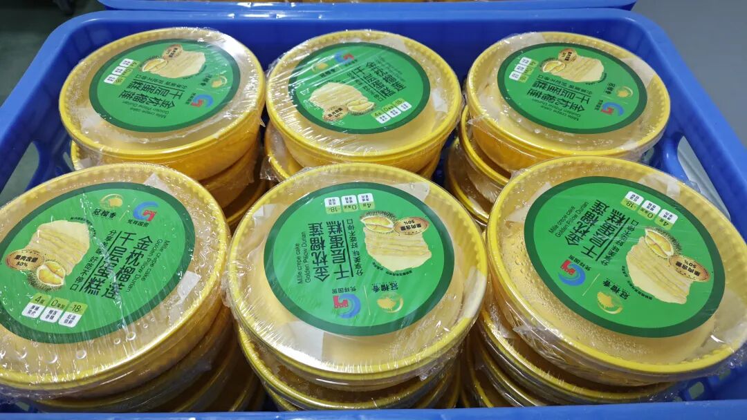 3月10日,记者走进位于广西凭祥市边境合作区的广西凭祥冠榴香食品有限公司生产车间,映入眼帘的是一派繁忙而有序的生产景象。工人们正在生产线上赶制榴莲千层蛋糕,只见一张张金黄的饼皮在自动化设备的加热下快速凝固成型。随后,工人将饼皮精准平铺在馅料注射设备上,随着机器均匀操作,一层浓郁香甜的榴莲果泥被涂抹在饼皮上。经过多次精密的重复步骤,一个个馅料饱满、层次分明的榴莲千层蛋糕便制作完成,即将通过冷链物流装车,发往全国各地。