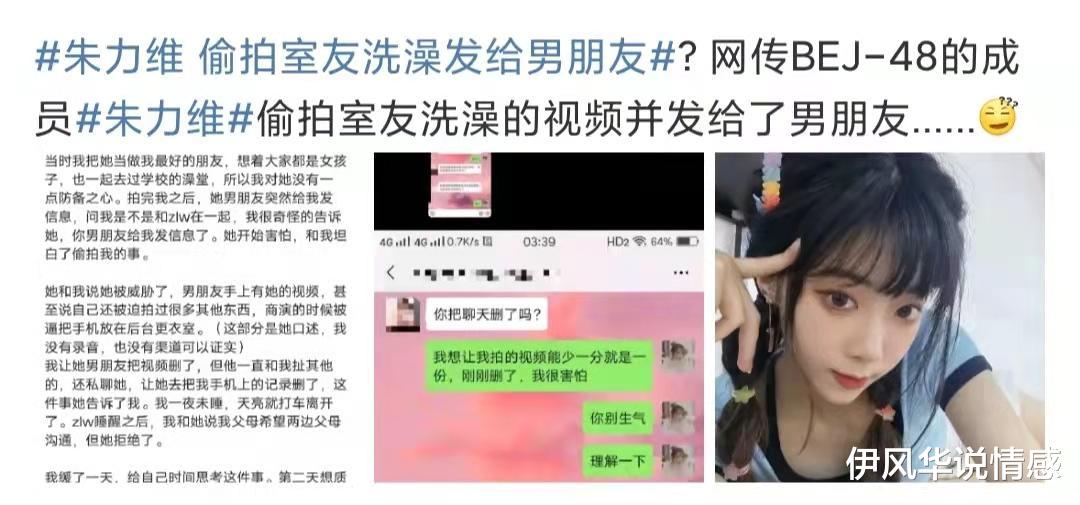 7月31日,BEJ-48的女团成员朱力维被曝偷拍室友洗澡视频,并将视频发给了自己的男友,此事引发网友热议。