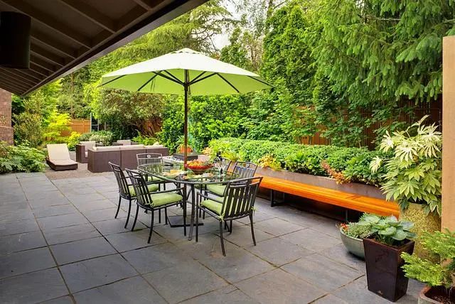 添加一个户外餐桌和椅子,可以是正式的或者休闲的,考虑建一个户外厨房或烧烤区。