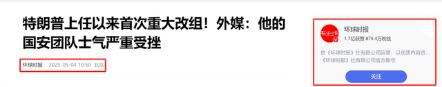 1.原文登载于环球时报2025年05月04日关于“特朗普上任以来首次重大改组!外媒:他的国安团队士气严重受挫”的报道