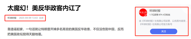 4.原文登载于环球时报2025年04月09日关于“太魔幻!美反华政客内讧了”的报道