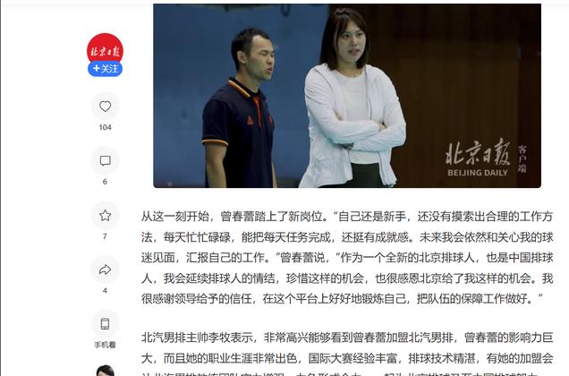 北京日报 [曾春蕾“全新再出发” 女排前国手出任男排领队]