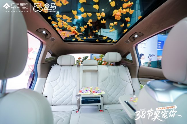 这正是广汽集团旗下的高端品牌昊铂,联合盒马鲜生打造的“广汽昊铂X盒马鲜生38节昊宠你”主题活动现场。他们直接把“女神专属放松舱”搬进了现实:走进广汽昊铂HL的座舱,双零重力座椅一键躺平,身体被柔软包裹,疲惫瞬间卸下;旁边是精致的下午茶,耳边是舒缓的音乐。会发现车内空间美学还可以这样玩。