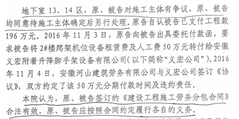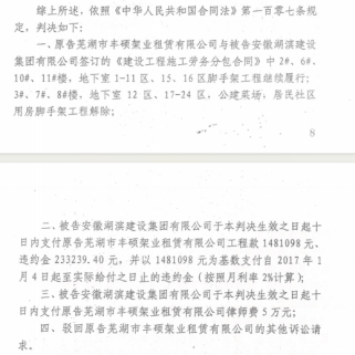 合作起争议,纠纷陷入长期诉讼2014年10月,丰硕架业与湖某公司签订《建设工程施工劳务分包合同》,承接芜湖赭山春秋商业住宅I标段脚手架材料供应及搭拆工程。合同明确约定工程量按单体工程核算、工期及延期付款违约责任等条款。