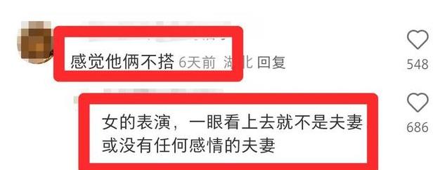 更有网友说,“感觉他俩不搭,女的表演,一眼看上去就不是夫妻或没有任何感情的夫妻”。