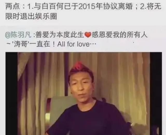 结合白百合在2014年,删光了与陈羽凡恩爱的微博。