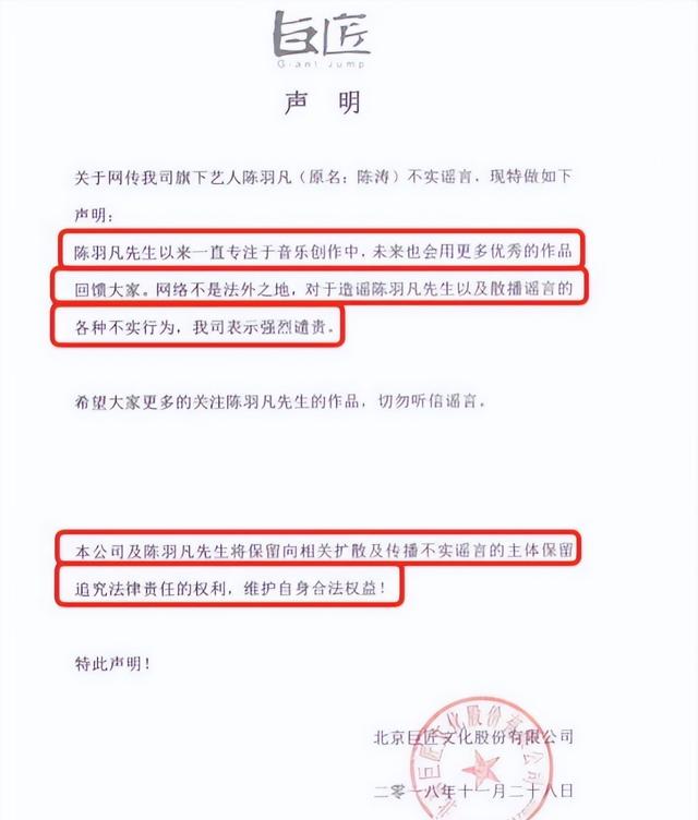 消息在网上传开后,陈羽凡的公司迅速“辟谣”。