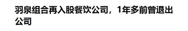 信息来源:羽泉组合再入股餐饮公司,1年多前曾退出公司