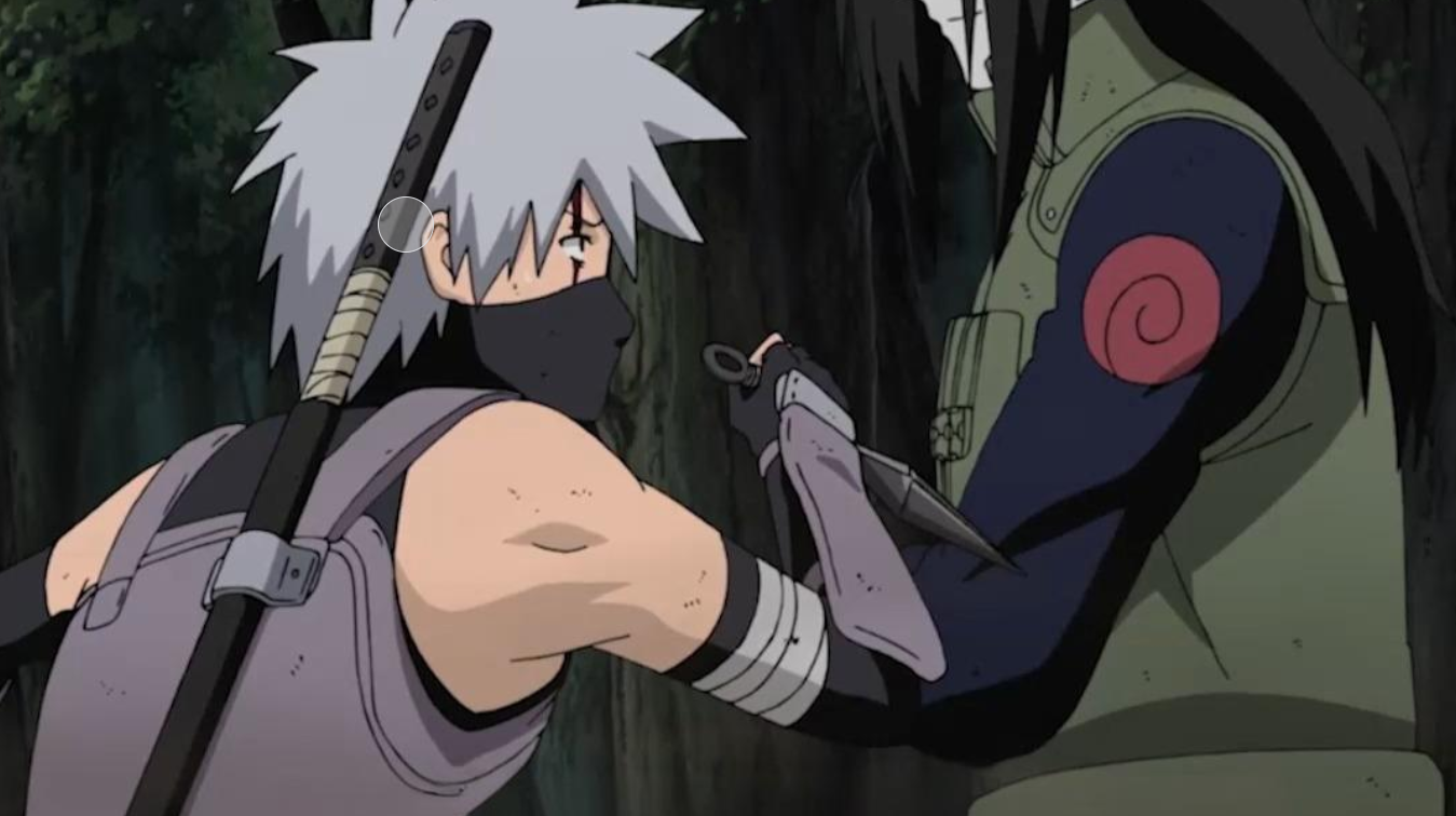这是卡卡西全剧中唯一一次未战先怯,甚至没有尝试对抗,而是选择优先保护佐助和小樱。