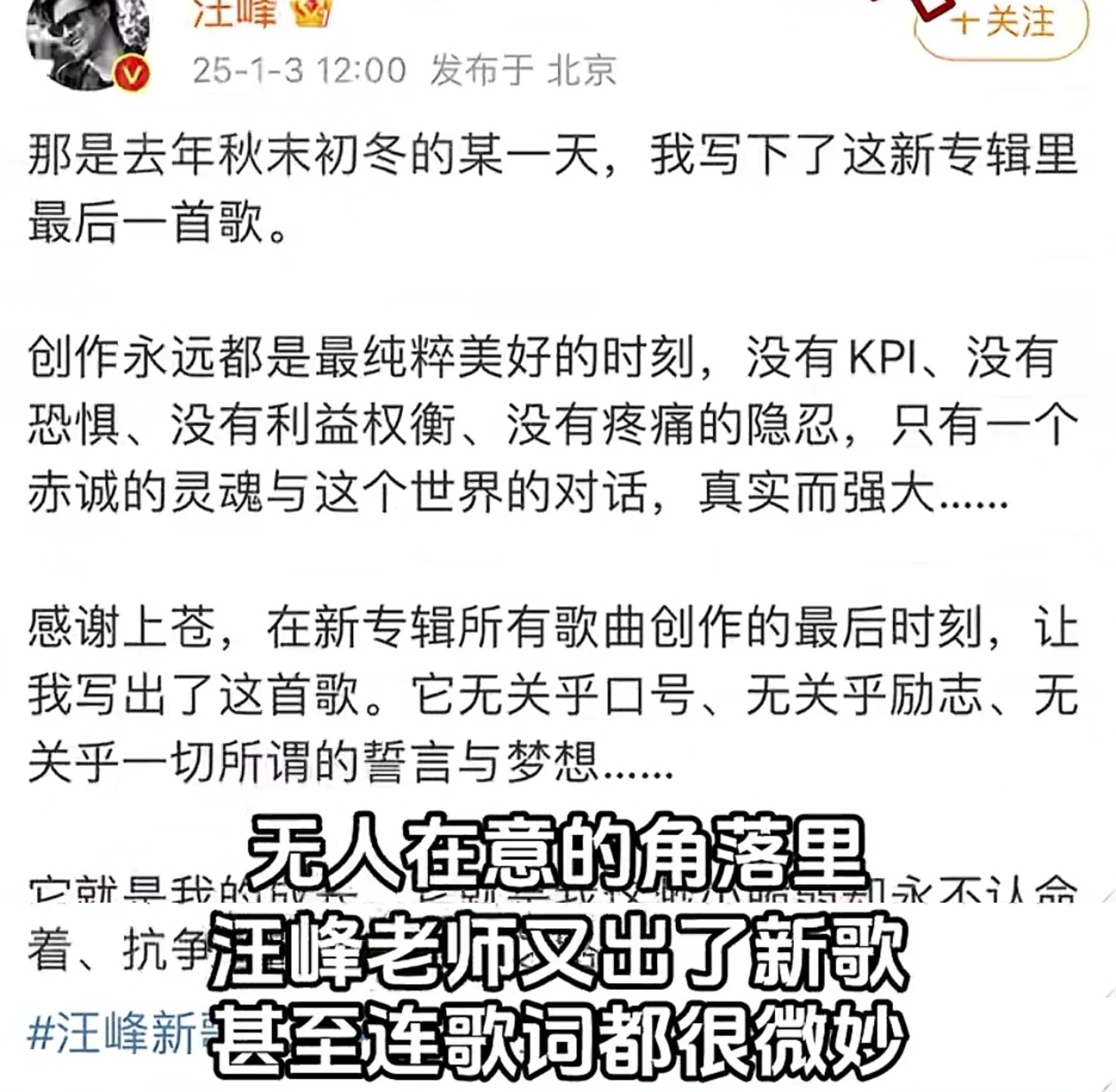 然而有网友突然想起了什么,火速前往汪峰主页,1月3号果然发新歌了!而且歌词十分应景,堪称战歌!