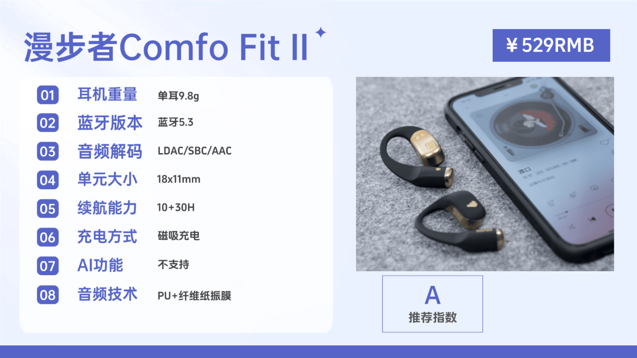 开放式耳机推荐四:漫 步者Comfo Fit II(¥529)