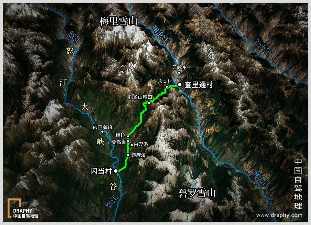 一路穿行在三江并流核心区中,从澜沧江流域翻山越岭穿过碧罗雪山山脉,来到怒江流域。