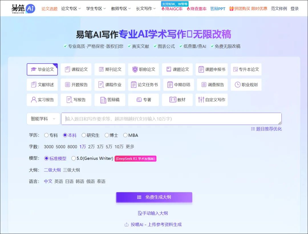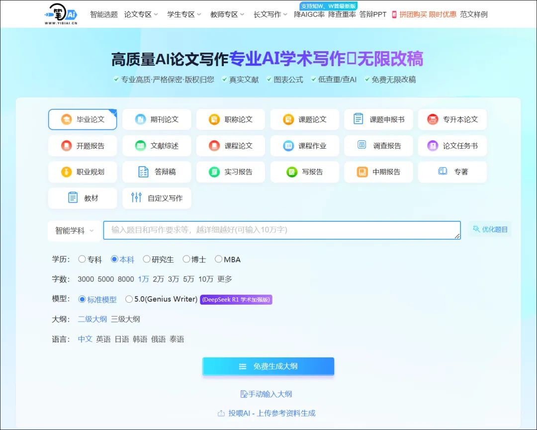 五、易笔AI:语义层深度重构,AI写专著教材原创品质易笔AI官网:https://www.yibiai.com/AI_A4295E0