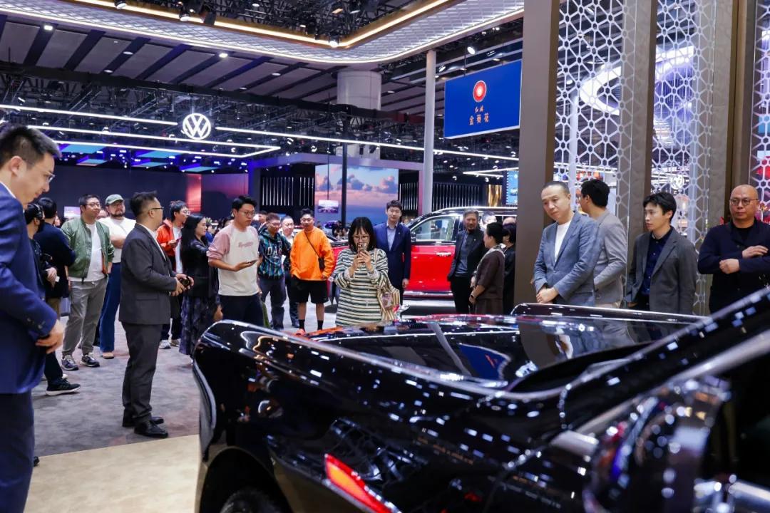 上午八时三十分,距离发布会还有半小时,红旗金葵花展台已是人流如织。长枪短炮早早架起,来自中东、东南亚等地的经销商与媒体将展车围得水泄不通。他们或是俯身细察门板上流转的大漆工艺,或是轻抚座椅间的刺绣针脚,试图从“丹霞”主题的炽烈色彩与非遗匠心中,破译一个古老文明对豪华的当代诠释。