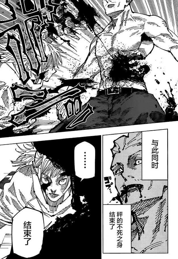 但他还是小看了一个亡命赌徒的心理,秤金次再次领域展开,他要在自己生命结束之前,再一次刷到头奖,这种不死不休的气势,也让本场对战推向了高潮阶段。作为比较bug级的咒术师,秤金次能否获胜,个人感觉全看作者心情了,因为要想他赢也很简单,立马刷中头奖,那么他就会再获得4分11秒的不死之身时间,这期间近乎无限咒力,经过长时间的消耗,鹿紫云一若是没有底牌使用的话,这一场对战光是耗就能够将他耗死。