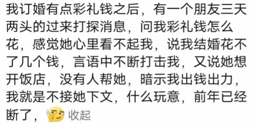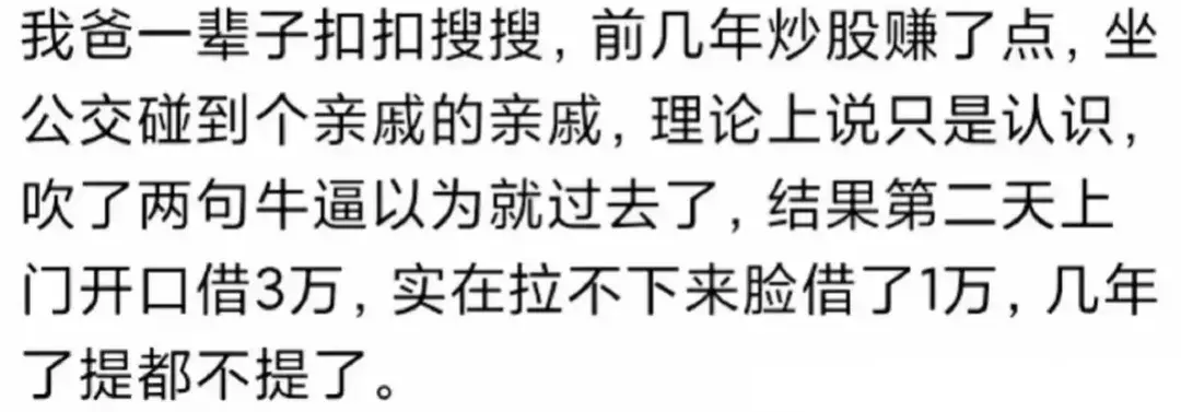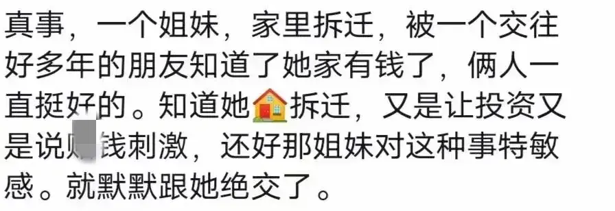 为什么这么说呢?你没钱的时候,或许你身边的人都能以一种相对平等的心态与你相处,彼此间的交往更多基于情感的共鸣与日常互助。