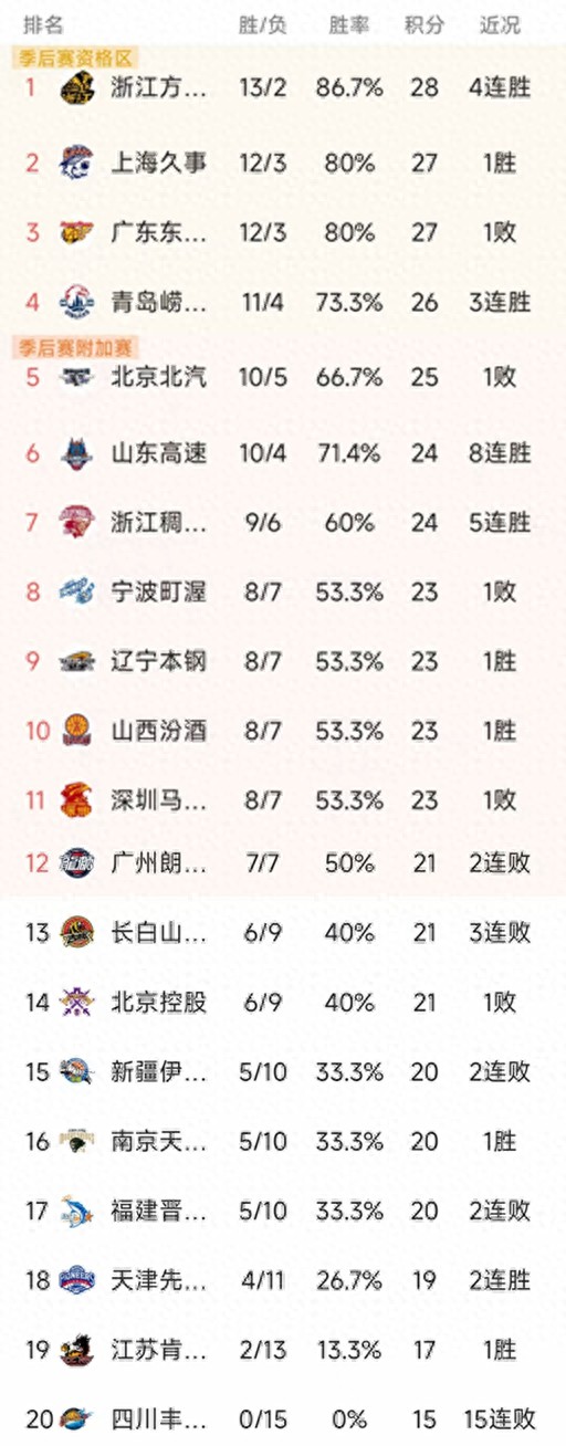 CBA最新积分榜