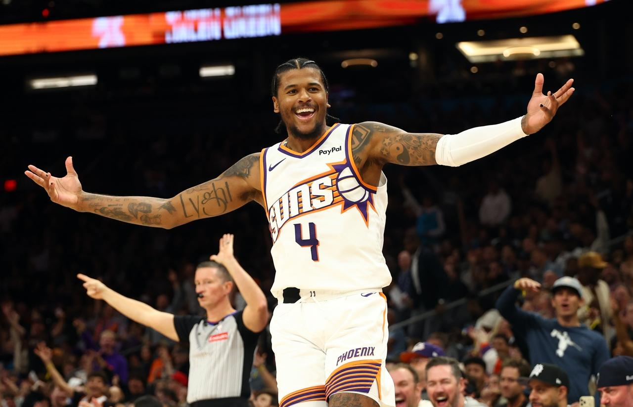 此战太阳方面狄龙继续缺阵,杰伦格林复出,迎来太阳生涯首秀,快船方面哈登、伦纳德缺阵,上半场比赛靠着祖巴茨的强势发挥,快船稍占上风,半场战罢快船领先3分。第三节比赛太阳完胜快船,单节赢了17分,三节战罢太阳领先14分。第四节太阳快速扩大优势,分差来到25分。杰伦格林就此打卡下班,快船替补追回一些分差,最终太阳115-102击败快船。
