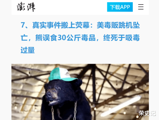 1:澎湃新闻——真实事件搬上荧幕:美毒贩跳机坠亡,熊误食30公斤毒品,终死于吸毒过量