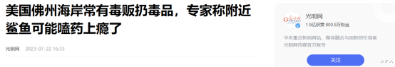 4:光明网——美国佛州海岸常有毒贩扔毒品,专家称附近鲨鱼可能嗑药上瘾了