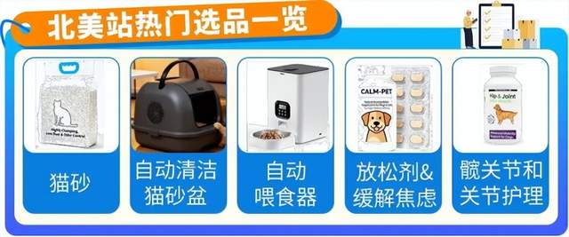 近年来,“拟人化”趋势十分显著,宠物享受的几乎是“人类级”的待遇,北美站的宠物用品就呈现了这样的趋势。据趋势泡泡图显示,宠物床铺、宠物尿布、专用的发声玩具、髋关节护理保健品等都有不错的市场。并且可以看到,目前在智能养宠方面,自动清洁猫砂盆、自动喂食器仍是蓝海。