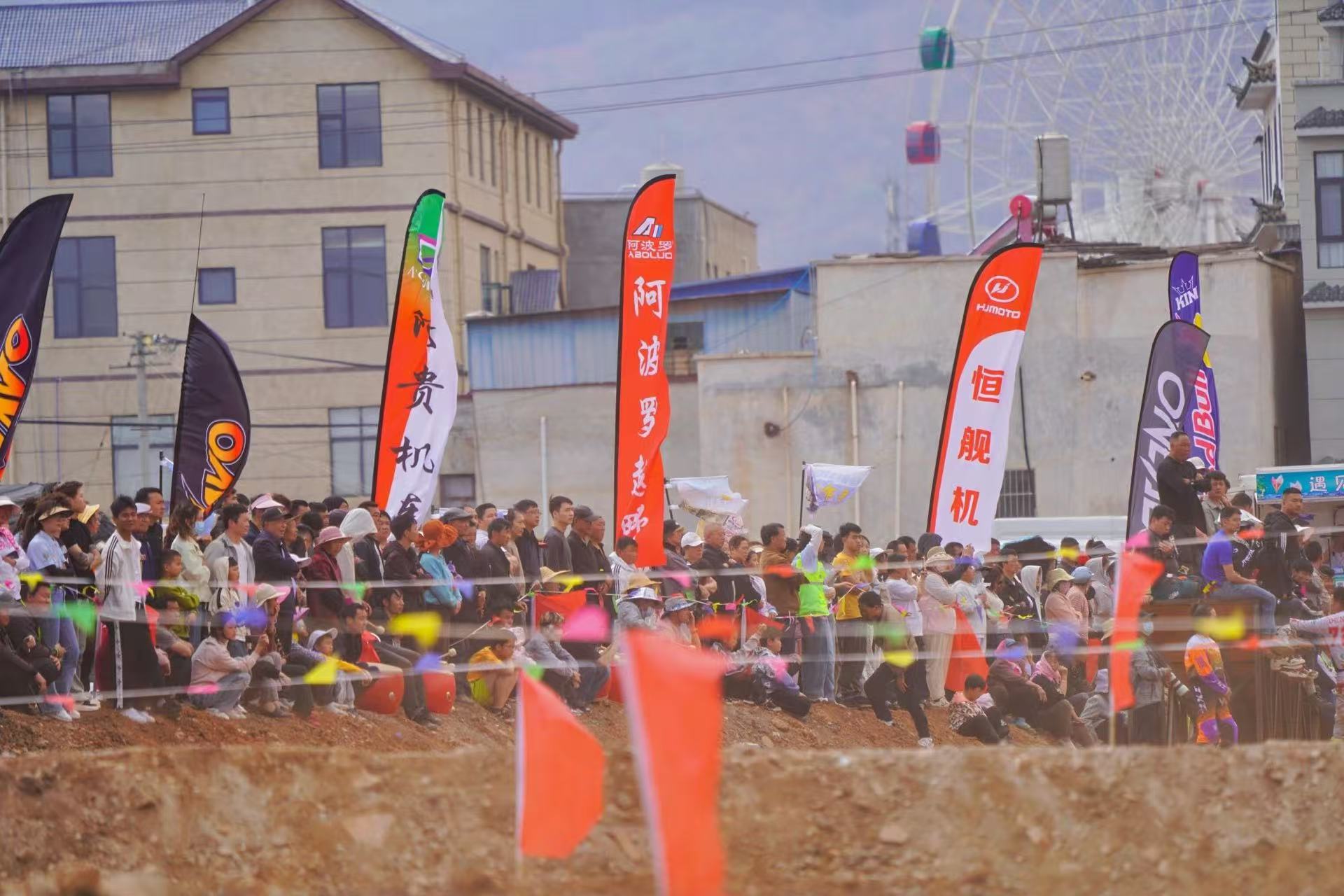 伴随着七彩礼炮,一辆辆越野摩托车有序穿过青铜钱币"嘉靖通宝",有序巡游在会泽街道上,在数万民众的呐喊中,最终涌入水城村赛区沸腾的竞技场。