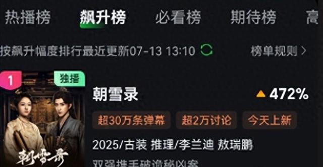 就在昨天,又有一部古装剧开播了!在播出之后,这部剧的热度就一路飙升,就在今早热度直接突破了7500,成为了了剧榜第一。