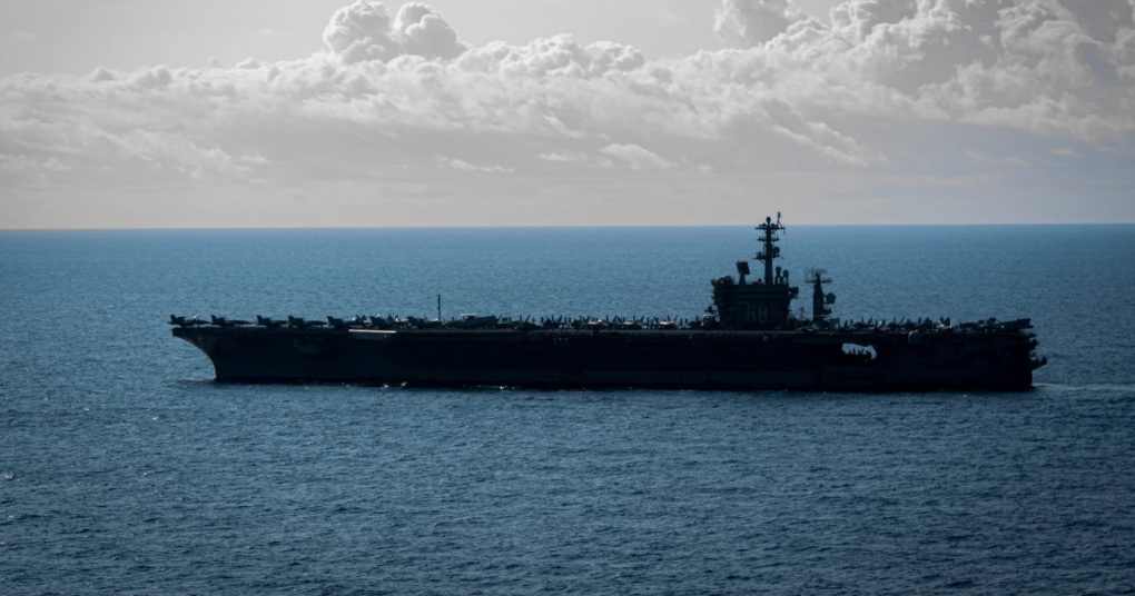 5月4日,在“柯蒂斯·威尔伯”号(DDG-54)、“格里德利”号驱逐舰 (DDG-101) 和“莱娜·萨特克利夫·希格比”号驱逐舰 (DDG-123) 以及舰队加油舰“约翰·刘易斯”号(T-AO-205)等舰艇的伴航下,这支大型航母编队已经逼近至距离我黄岩岛仅65海里(约120.38公里)处。